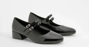 Breite Passform Ballerinas Mit Blockabsatz Und Schnalle - Black - 39, Black