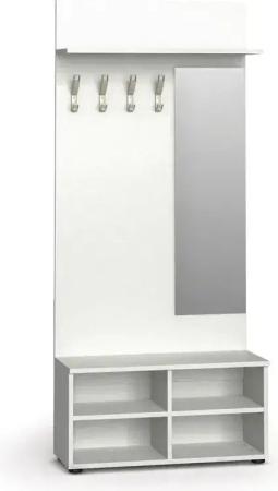 Garderobenwand HORIZONT, Schuhregal + Spiegel, 4 Haken, Ablage, weiß