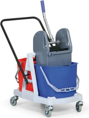Professioneller Reinigungswagen mit zwei Eimern zur Komplettreinigung, 68 x 103 x 114 cm