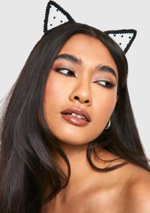 Halloween Mesh Katzenohren - Schwarz - One Size, Schwarz