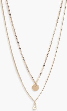 Womens Gold Pearl Layered Necklace - One Size, Gold