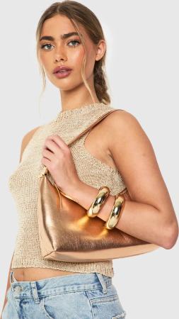 Metallic Pu-Schultertasche Mit Umhängetasche - Rose Gold - One Size, Rose Gold