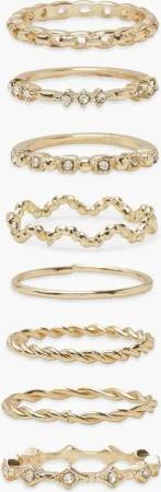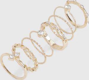 Womens Gold Diamante 8 Pack Rings - One Size, Gold