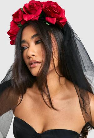 Schwarzer Halloween-Schleier Aus Spitze Mit Rosen-Detail - Black - One Size, Black