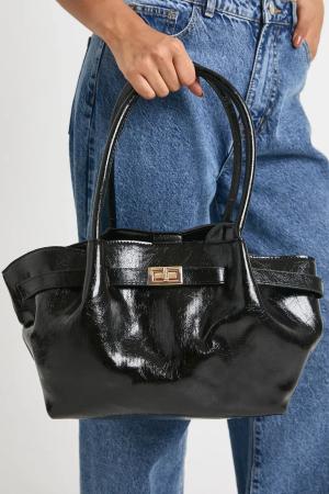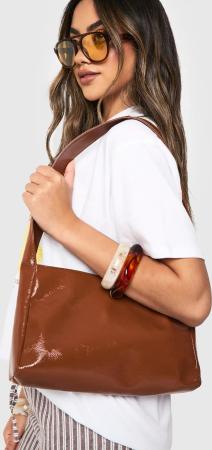 Strukturierte Lack-Schultertasche - Tan - One Size, Tan