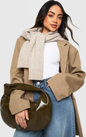 Strukturierte Lack-Tasche Mit Knoten-Detail - Khaki - One Size, Khaki