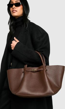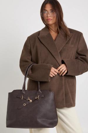 Strukturierte Pu-Tragetasche Mit Schnallen-Detail - Chocolate - One Size, Chocolate