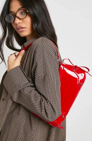 Womens Bow Detail Vinyl Shoulder Bag - Red - One Size, Red