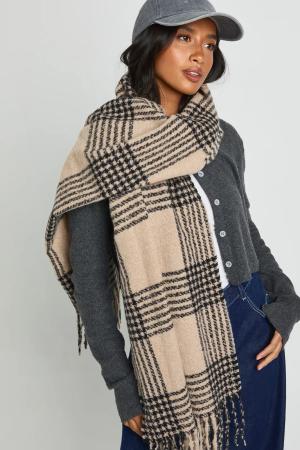 Womens Check Lightweight Blanket Scarf - Beige - One Size, Beige