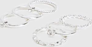 Womens Diamante Detail 6 Pack Rings - Silver - S/M, Silver