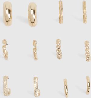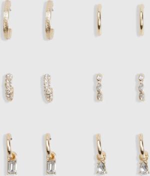 Womens Diamante Detail Hoop Earrings 6 Pack - Gold - One Size, Gold