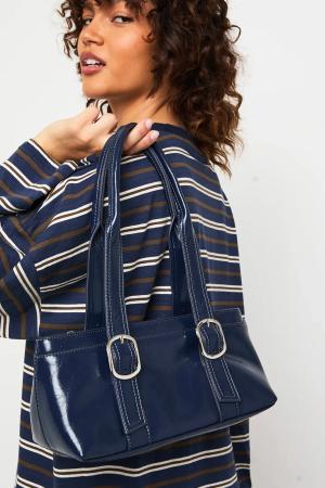 Womens Double Buckle Detail Bowling Bag - Navy - One Size, Navy