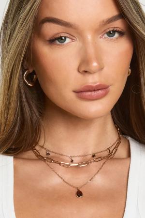 Womens Gemstone 3 Layered Necklace - Rose Gold - One Size, Rose Gold