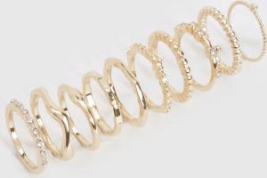 Womens Gold 10 Pack Rings - M/L, Gold