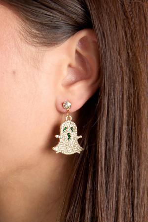 Womens Halloween Embellished Ghost Earrings - Gold - One Size, Gold