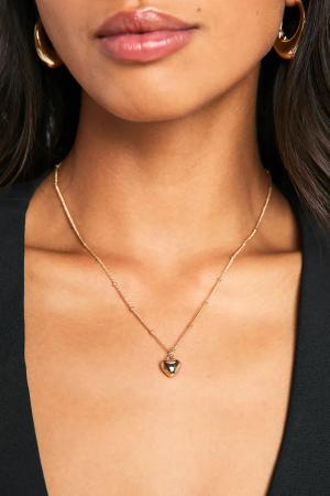 Womens Heart Pendant Ball & Chain Necklace - Gold - One Size, Gold