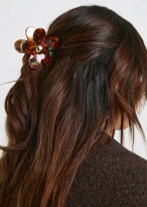 Womens Resin Flower Metal Claw Clip - Gold - One Size, Gold