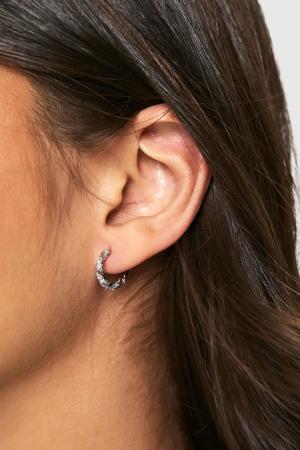 Womens Silver Embellished Mini Hoop Earrings - One Size, Silver