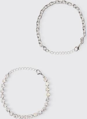 2 Pack Diamante Chain Bracelets - Silber - ONE SIZE, Silber