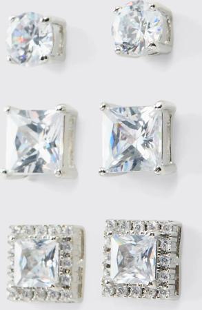 3er-Pack Strass-Ohrringe - Silber - ONE SIZE, Silber