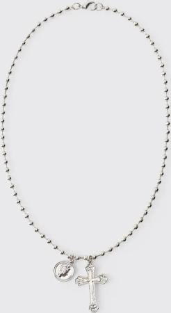 Coin and Cross Necklace - Silber - ONE SIZE, Silber