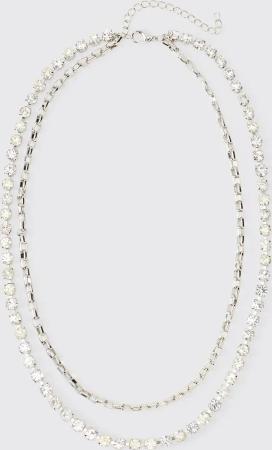 Multi Layer Diamante Chain Necklace - Silber - ONE SIZE, Silber