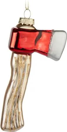 Axt - Handbemalte Weihnachtskugel aus Glas - 11 cm Baumkugel für Holzfäller - Mundgeblasener Christbaumschmuck - Deko Figur Weihnachten - Weihnachtsdeko Anhänger - Rot, Weiß
