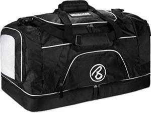 'Big Base' XXL Sporttasche 90 L mit großem Nassfach als Bodenfach + Schuhfach - Schwarz/Weiß