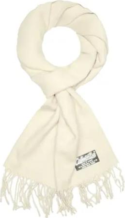 Cashmirillo Schal - ca. 30 x 180 cm Lang Leicht Warm und Kuschelig - Herbst und Winter Kuschelschal - Stola Tuch mit Fransen für Damen und Herren - Ecru