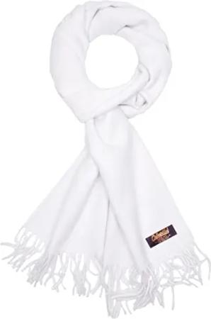 Cashmirillo Schal - ca. 40 x 180 cm Lang Leicht Warm und Kuschelig - Herbst und Winter Kuschelschal - Stola Tuch mit Fransen für Damen und Herren - Weiß