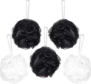 Cosmetics - 5x Peeling- oder Massage Schwamm Badeschwamm Duschschwamm mit Aufhänger - Schwarz/Weiß