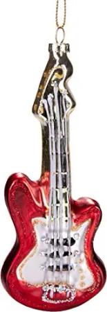 Gitarre Rot - Handbemalte Weihnachtskugel aus Glas - Mundgeblasener Christbaumschmuck Figuren lustig Deko Anhänger Baumkugel - ca. 15 cm