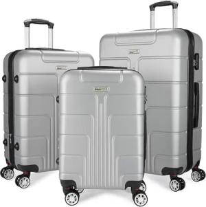 Hartschalen Kofferset Miami - Erweiterbare Koffer mit Zahlenschloss, 4 Rollen und Tragegriffen - 3 teiliges Reisekoffer Set inklusive Handgepäck - ABS Rollkoffer (M, L, XL - Silber)