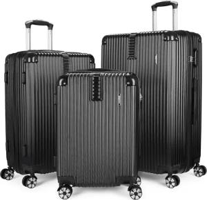 Kofferset London - 3 teiliges Reisekoffer Set inkl. Handgepäck - Hartschalen Koffer mit Zahlenschloss, 4 Rollen und Komfort Tragegriffen - ABS Boardcase Trolleys (M, L, XL - Schwarz)