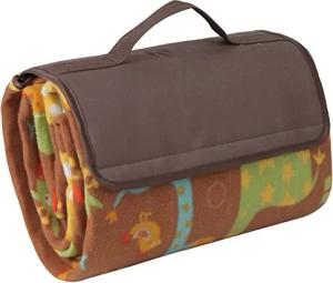 Picknick Decke Fleece mit wasserfester PEVA Unterseite 150 x 135 cm Braun mit Tieren Grün Gelb