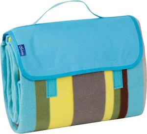Picknick Decke Fleece mit wasserfester PEVA Unterseite 150 x 135 cm Türkis Streifen Grau Grün Gelb