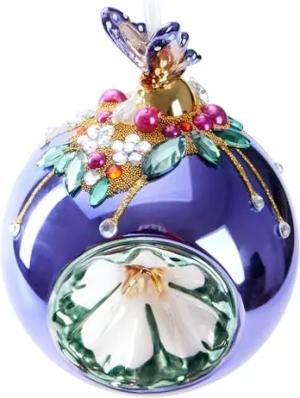 Premium Weihnachtskugel Lila mit Schmetterling Figur - 10 cm Christbaumschmuck mit Perlen Dekorationen - Von Hand dekorierte Baumkugel aus Glas - Weihnachtsdeko Christbaumkugel