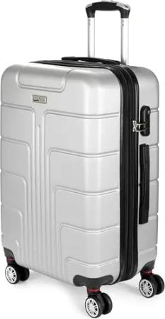 Hartschalen Reisekoffer London - Rollkoffer mit Zahlenschloss, 4 Rollen und Komfort Tragegriffen - ABS Koffer 43 x 66,5 x 26 cm - Hartschalenkoffer Trolley (L - Silber)