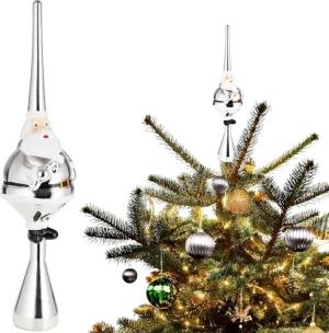 Weihnachtsbaumspitze Dicker Santa - Christbaumspitze glänzend - 35 cm große Baumspitze Weihnachtsmann - Weihnachtsbaum Spitze - Tannenbaum Deko Weihnachten - Tannenbaumspitze - Silber