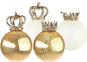 Weihnachtskugel Set - King und Queen - 4 Premium Baumkugeln aus Glas - Gold und Glitzer mit Kronen - Christbaumschmuck König/Königin - Weihnachtsdeko Royal Duo