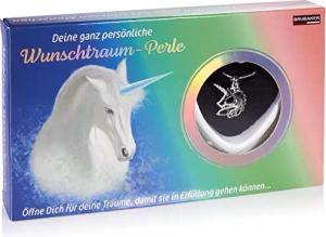 Wunschtraum Wunschperle - Halskette mit Einhorn Anhänger + Muschel mit echter Perle als Schmuck Geschenkset