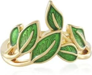 Damen Ring aus 925 Sterling Silber mit grüner Emaille und Blattmotiv, vergoldet, elegant modernes Naturdesign, 3,16 g, Größen 17-20, hochwertiger Schmuck