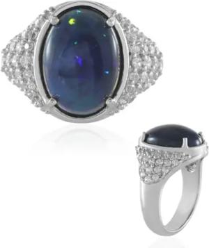 Mezezo Opal Ring 2,831 ct mit ovalem Cabochon aus Äthiopien, veredelt mit funkelndem Zirkon, hochwertiger 925 Sterling Silberring, platinbeschichtet, elegant und modern, 26x21 mm