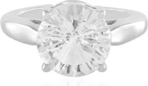 Weißer Quarzring 3,03 ct in platinierter 925er Silberfassung – eleganter runder Quarz Silberschmuck, moderner runder Fancy-Schliff aus Brasilien, stilvoller Damenring