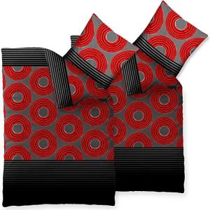 Harmony Bettwäsche 155 x 220 cm 4teilig Mikrofaser Bettbezug Noreen Streifen Kreise Grau Schwarz Rot