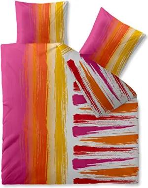 Harmony Bettwäsche 200 x 220 cm Mikrofaser Bettbezug Sabrina Streifen Weiß Orange Pink