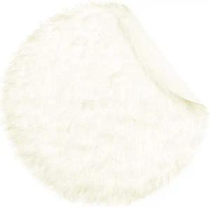 Plush Läufer rund 90 cm weiß hochfloriger Fellimitat Bettvorleger Kunstfell Langhaar Flurteppich