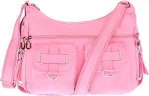 große Damen Tasche Schultertasche Umhängetasche Crossover Bag Leder Optik Handtasche Rosa