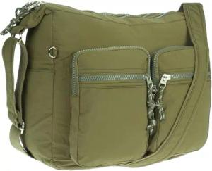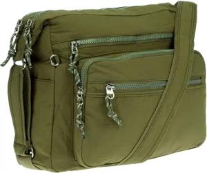 Nylon Umhängetasche Damen Groß - Mittelgroß mit Zwei Hauptfächern - Verstellbarer Trageriemen bis 150 cm - Reißverschlussfächer - Tasche mit Vielen Fächern - 30x26x12 cm Olive