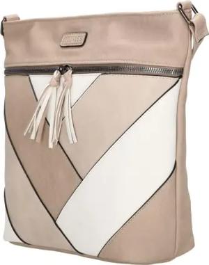 Damen Tasche Schultertasche Umhängetasche Crossover Bag Leder Optik Handtasche Offweiss